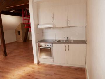 Spacieux et charmant appartement d’environ 95m2. 3,5 pièces, avec parquet et poutres apparentes dans un petit immeuble de 3 logements en pleine nature composé comme suit: – Cuisine agencée avec nombreux rangements et lave-vaisselle ouverte sur grande salle à manger avec bar et cheminée – une chambre d’environ 18m2 avec dressing – une chambe d’environ 15m2 – grand salon lumineux d’environ 23m2 – salle de bains/WC – cave avec étagères – buanderie et jardin communs – places de parking – 5 minutes en voiture du centre-ville, service de bus scolaire ou transports en commun à env. 15 min. à pied