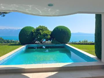Freistehende Villa mit See- und AlpenblickSuchen Sie die Immobilie Ihrer Träume?Entdecken Sie diese prächtige Villa in den Höhen von Lutry und genießen Sie einen Panoramablick auf den Genfersee und die Alpen. Mit einer Gesamtwohnfläche von 234 m² und ihrer südlichen Ausrichtung bietet diese Villa eine außergewöhnliche Wohnumgebung.Diese freistehende Villa mit 6,5 Zimmern erstreckt sich über zwei Stockwerke und wurde 1978 erbaut, wobei zwischen 2020 und 2025 komplette Renovierungen durchgeführt wurden. Es verfügt über drei Doppelschlafzimmer mit Möglichkeit eines zusätzlichen Schlafzimmers und zwei modernen Badezimmern, außerdem zwei Gästetoiletten, eine nach Süden ausgerichtete Terrasse mit Panoramablick sowie eine westliche Terrasse mit Grillplatz. Außenparkplätze und eine riesige, geschlossene Garage von mehr als 70 m² schmücken dieses Grundstück.Mit eigenem Eingang ist der Keller vollständig ausgestattet mit einem Büro, einem großen Spielzimmer, Gästetoiletten, einem Heimkino, einer
