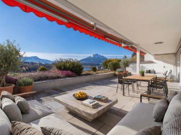 Mitten im Herzen der Stadt Luzern, unmittelbar am Vierwaldstättersee und in einer der exklusivsten Wohnlagen der Region, befindet sich diese aussergewöhnliche Wohnung in der renommierten Residenz Tivoli. Die Liegenschaft überzeugt durch ihre privilegierte Lage sowie den herrlichen Blick in den gepflegten und ruhig gelegenen Gartenbereich.Die stilvolle Wohnung im vierten Obergeschoss besticht durch einen durchdachten Grundriss, eine hochwertige Ausstattung und ein modernes Wohnkonzept. Mit insgesamt 4.5 Zimmern bietet sie grosszügigen Raum für individuelles Wohnen und höchste Wohnqualität.Der weitläufige Wohn- und Essbereich bildet das Herzstück der Wohnung. Die grosszügigen Fensterflächen sorgen für eine helle und freundliche Atmosphäre und schaffen ein elegantes Wohnambiente, das sowohl zum Entspannen als auch zum geselligen Beisammensein einlädt.Die separat angelegte Küche befindet sich in direkter Nähe zum Essbereich und vereint Funktionalität mit zeitloser Ästhetik. Hochwertige Mat