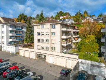 à 2 min du bord du lac, ligne de bus TL no 9, proche de Lutry et de ses commerces,hall, cuisine agencée avec lave-vaisselle, salle de bains-WC. Visite groupée le de 17h à 18h