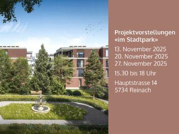 Im Stadtpark – umgeben von Natur und doch Mitten im Zentrum - Ihr neues Zuhause in Reinach (AG)Realisiert werden zwei Mehrfamilienhäuser mit insgesamt 19 attraktiven und hochwertige Eigentumswohnungen. Der Wohnungsmix bietet mit 3.5 und 4.5-Zimmer-Wohnungen die ideale Grösse für Paare, Familien und all jene, die Platz und Erholung mitten im Zentrum suchen.Das Besondere – die Wohnanlage wird innerhalb der bestehenden Parkanlage mit zwei wunderschönen Stadtvillen realisiert. Diese beiden Villen werden in das Gesamtprojekt mitintegriert und bilden das Herzstück der Wohnanlage.Funktionale Flächen, klare Linien und grosse Fensterflächen prägen den Eindruck der Häuser. Der hohe Ausbaustandart bietet modernsten Komfort und lässt dennoch Raum für die Realisierung von individuellen Wünschen.Jede Wohnung verfügt über einen grosszügigen Aussenraum wobei die Wohnungen im Erdgeschoss einen direkten Zugang zum Park bieten.Im Stadtpark – ein idealer Ort zum Wohlfühlen, Ankommen und einfach sein.Freue