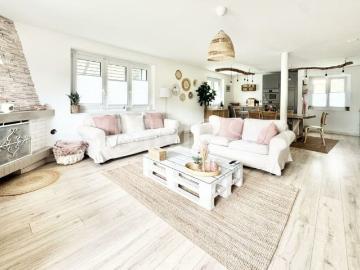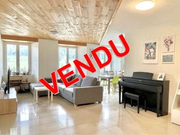 Wunderschöne 4,5-Zimmer-Wohnung an der 1? Etage einer Eigentumswohnung mit 7 Wohnungen, die 2013 renoviert wurden.Diese Immobilie verfügt über eine große, nach Süden ausgerichtete Terrasse mit freiem Blick und ohne Vis-à-vis.Diese Wohnung verfügt über eine Fußbodenheizung sowie Wasserzähler.Diese Bodeneinheit setzt sich wie folgt zusammen:Geräumiges Wohnzimmer mit Zugang zur TerrasseZum Wohnzimmer hin offene EinbaukücheGäste-WCVerteilerhalle3 SchlafzimmerBadezimmer mit Badewanne, Dusche und Platz für WaschmaschinenKellerDachbodenEine freistehende Garage ist in diesem Angebot enthalten.Die Eigentumswohnung verfügt über einen Gemeinschaftsgarten mit einem Picknickplatz.Zögern Sie nicht, uns für weitere Informationen sowie für eine Besichtigung vor Ort zu kontaktieren